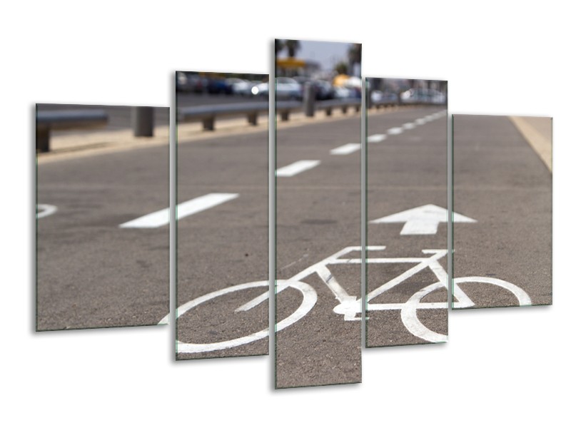 Canvas Schilderij Fietspad | Grijs, Wit | 170x100cm 5Luik