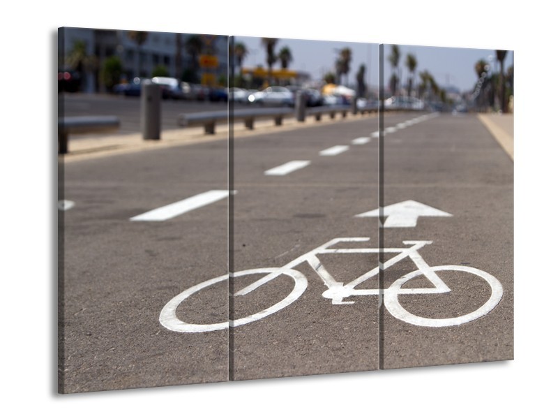 Canvas Schilderij Fietspad | Grijs, Wit | 60x90cm 3Luik