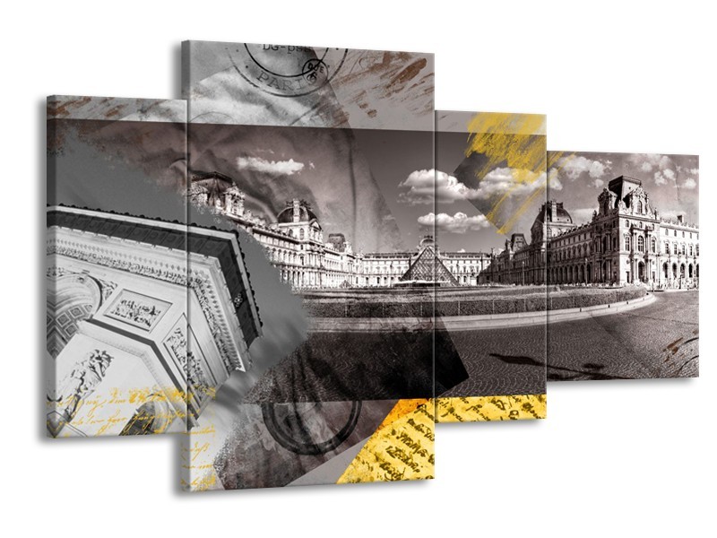 Canvas Schilderij Frankrijk, Louvre | Grijs, Crème, Geel | 120x75cm 4Luik