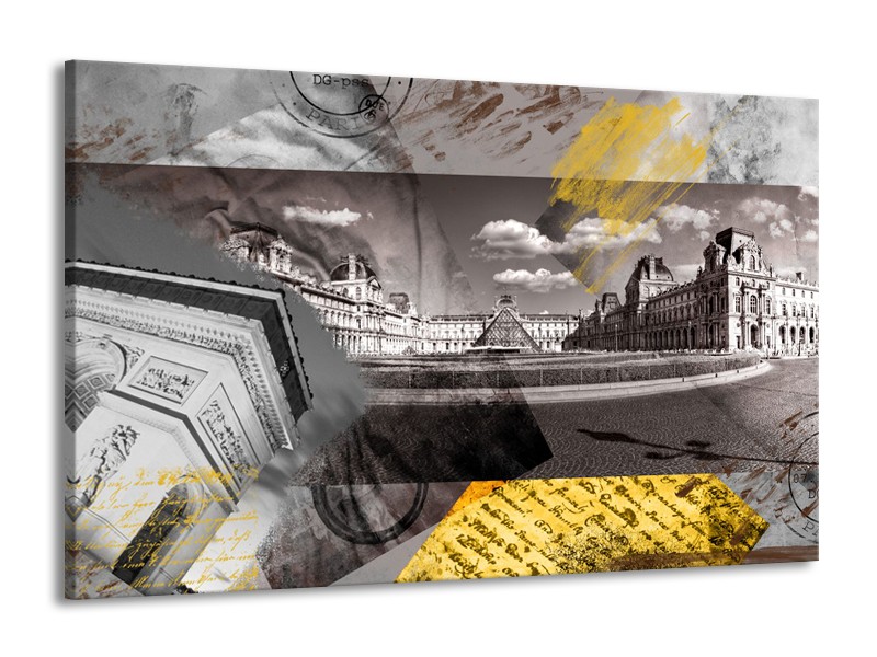 Canvas Schilderij Frankrijk, Louvre | Grijs, Crème, Geel | 140x90cm 1Luik