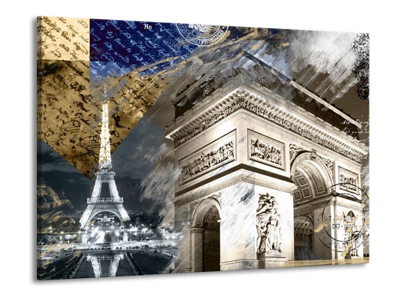 Canvas Schilderij Frankrijk, Parijs | Grijs, Crème, Geel | 100x70cm 1Luik