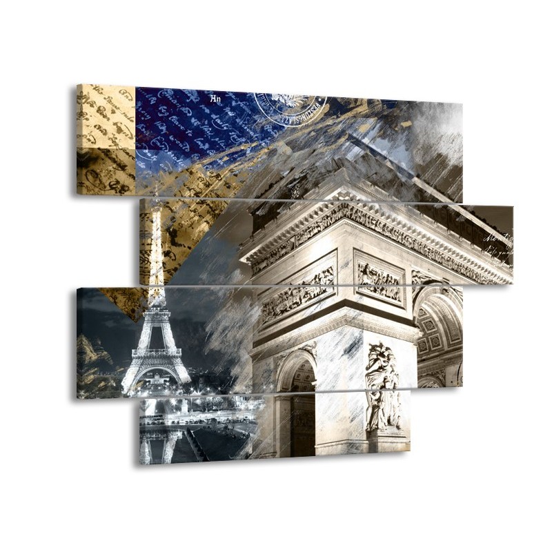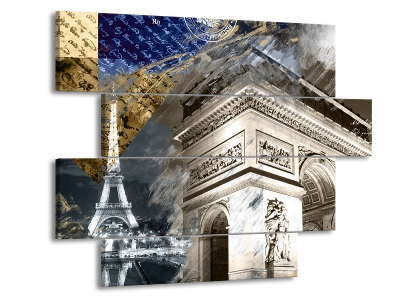 Canvas Schilderij Frankrijk, Parijs | Grijs, Crème, Geel | 115x85cm 4Luik