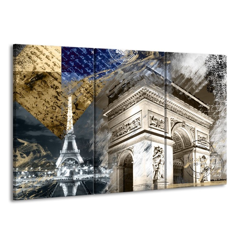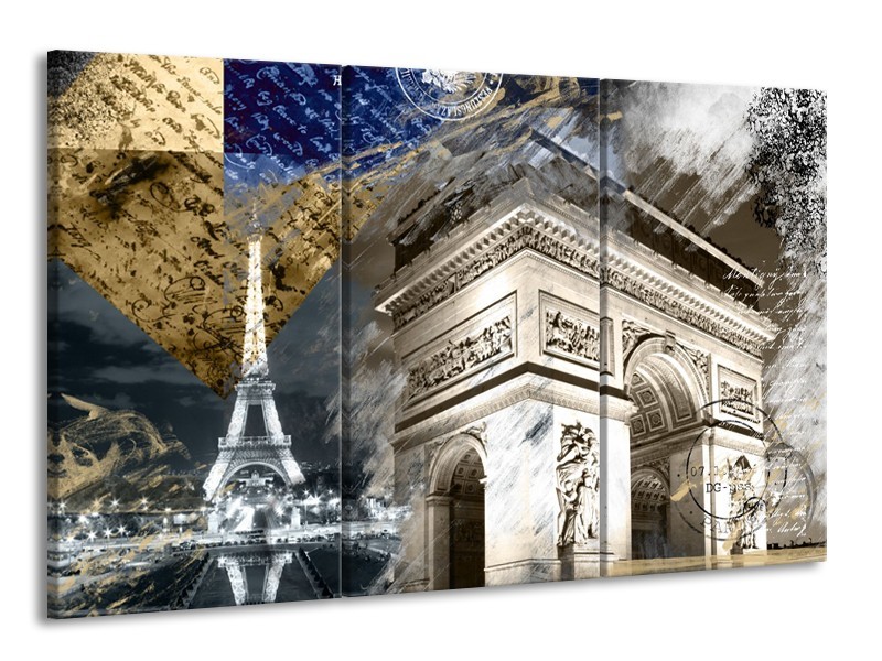 Canvas Schilderij Frankrijk, Parijs | Grijs, Crème, Geel | 165x100cm 3Luik