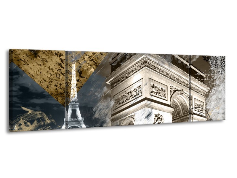 Canvas Schilderij Frankrijk, Parijs | Grijs, Crème, Geel | 170x50cm 3Luik