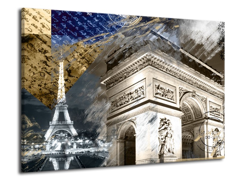 Canvas Schilderij Frankrijk, Parijs | Grijs, Crème, Geel | 70x50cm 1Luik