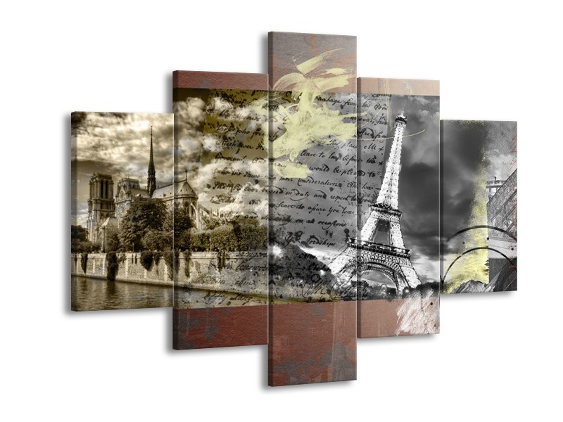 Canvas Schilderij Frankrijk, Parijs | Grijs, Geel, Bruin | 150x105cm 5Luik