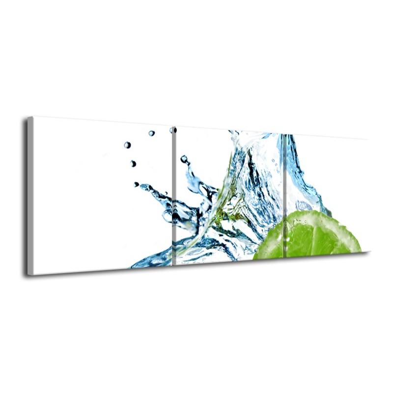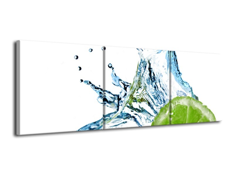 Canvas Schilderij Fruit, Keuken | Groen, Blauw, Wit | 120x40cm 3Luik