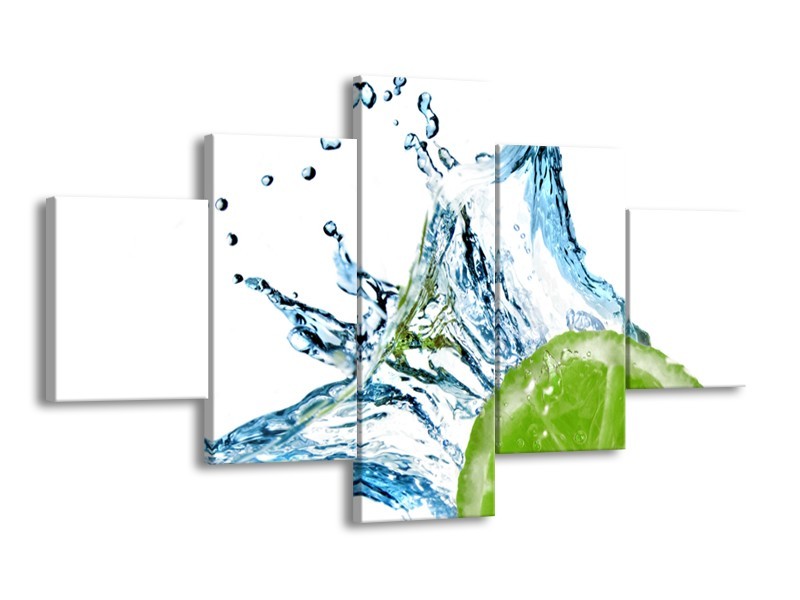 Canvas Schilderij Fruit, Keuken | Groen, Blauw, Wit | 125x70cm 5Luik