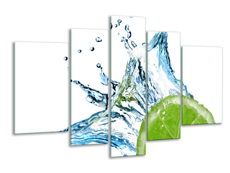 Canvas Schilderij Fruit, Keuken | Groen, Blauw, Wit | 170x100cm 5Luik