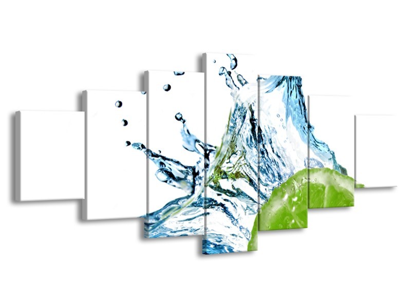 Canvas Schilderij Fruit, Keuken | Groen, Blauw, Wit | 210x100cm 7Luik