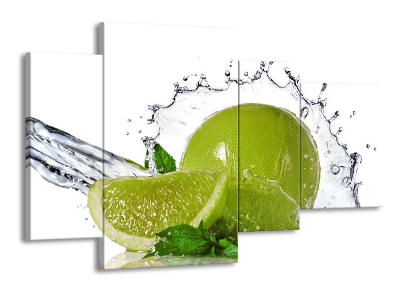 Canvas Schilderij Fruit, Keuken | Groen, Wit, Zilver | 120x75cm 4Luik