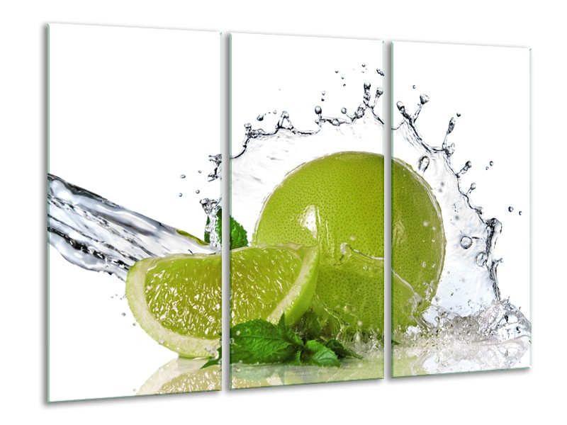 Canvas Schilderij Fruit, Keuken | Groen, Wit, Zilver | 120x80cm 3Luik