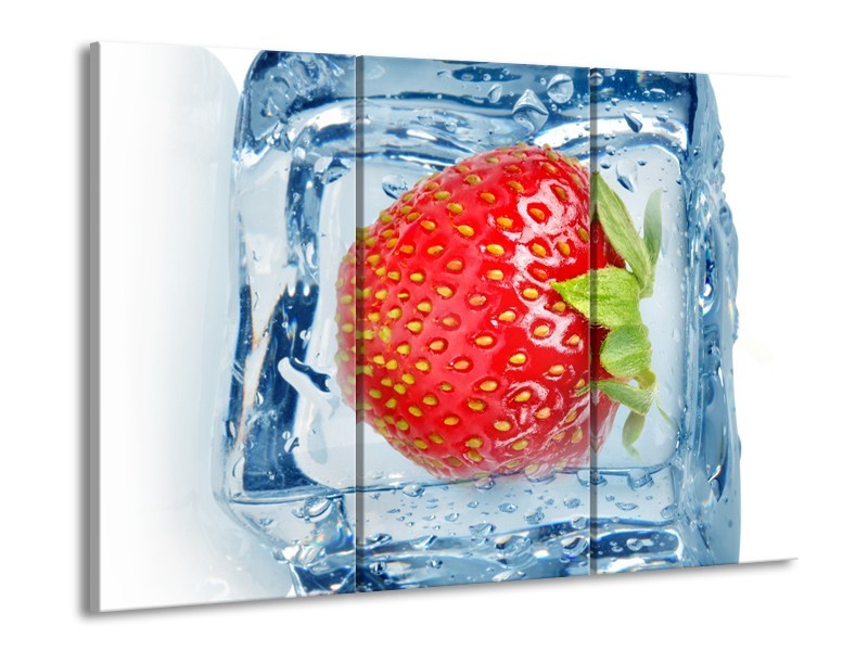 Canvas Schilderij Fruit, Keuken | Rood, Blauw, Wit | 60x90cm 3Luik