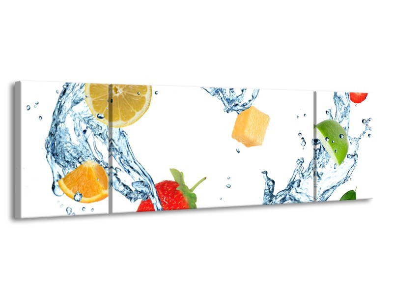 Canvas Schilderij Fruit, Keuken | Wit, Geel, Blauw | 170x50cm 3Luik