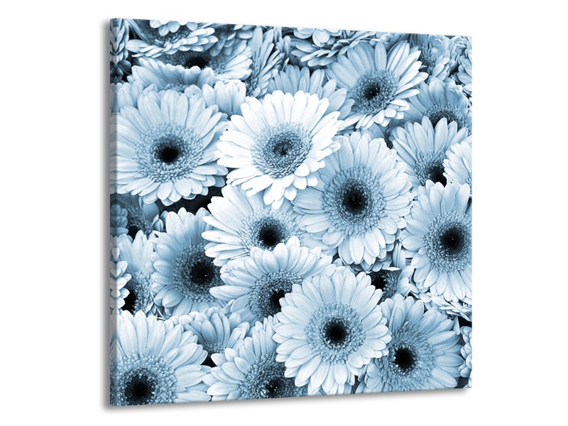 Canvas Schilderij Gerbera, Bloemen | Blauw, Grijs | 70x70cm 1Luik