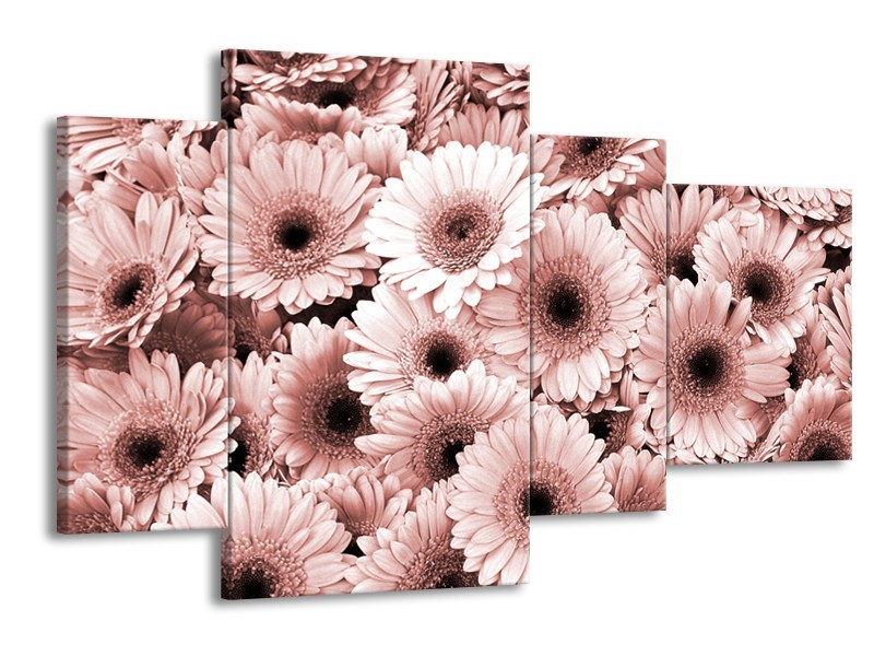Canvas Schilderij Gerbera, Bloemen | Bruin, Rood | 120x75cm 4Luik