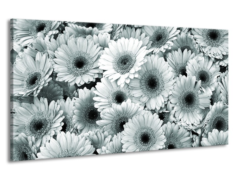 Canvas Schilderij Gerbera, Bloemen | Grijs, Groen | 190x100cm 1Luik