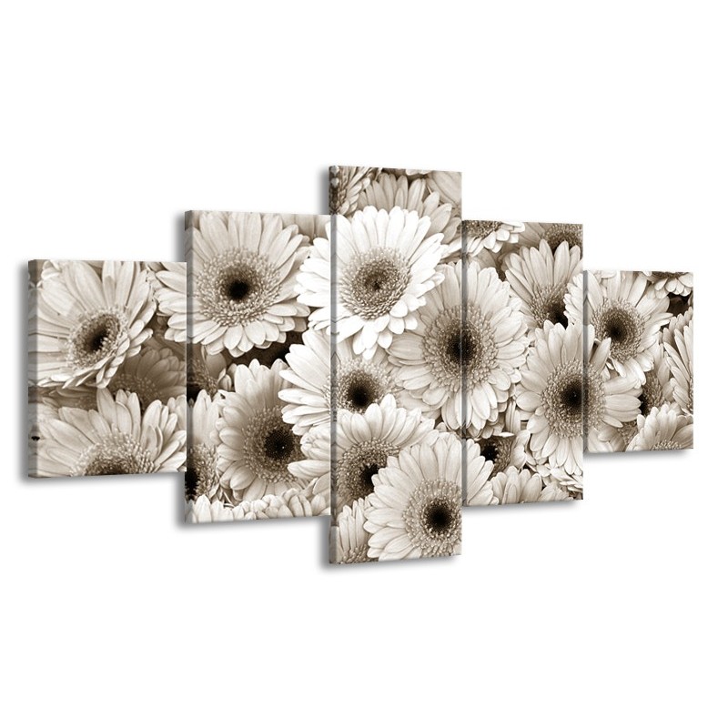 Canvas Schilderij Gerbera, Bloemen | Sepia | 150x80cm 5Luik