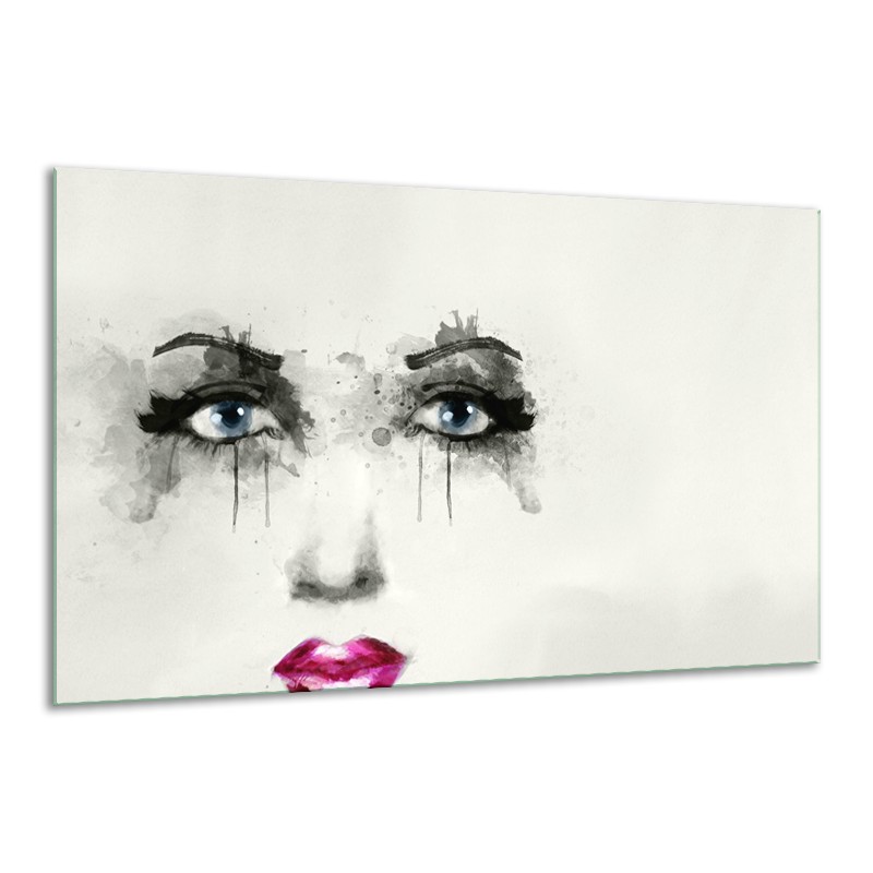 Canvas Schilderij Gezicht, Vrouw | Zwart, Roze, Crème | 120x70cm 1Luik