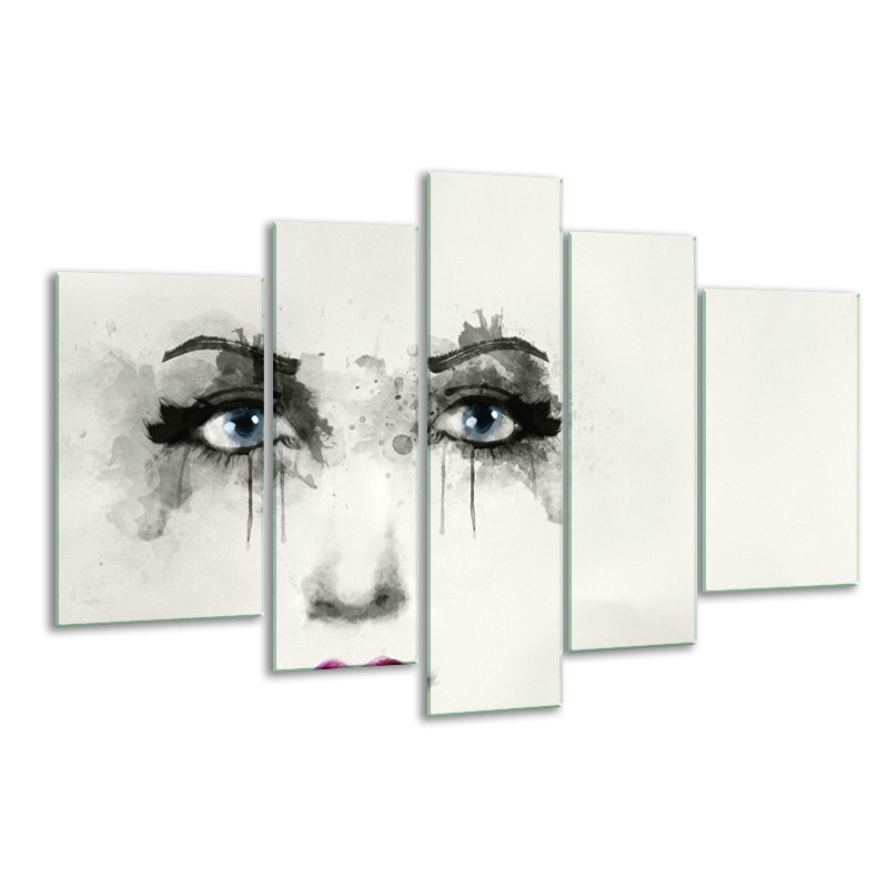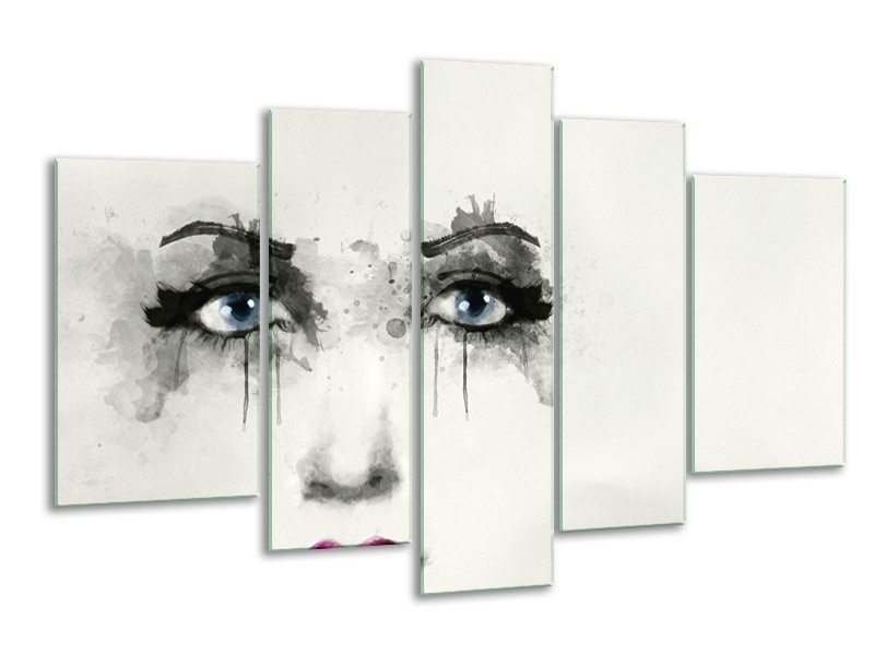 Canvas Schilderij Gezicht, Vrouw | Zwart, Roze, Crème | 170x100cm 5Luik