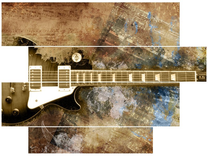 Canvas Schilderij Gitaar, Muziek | Bruin | 115x85cm 4Luik