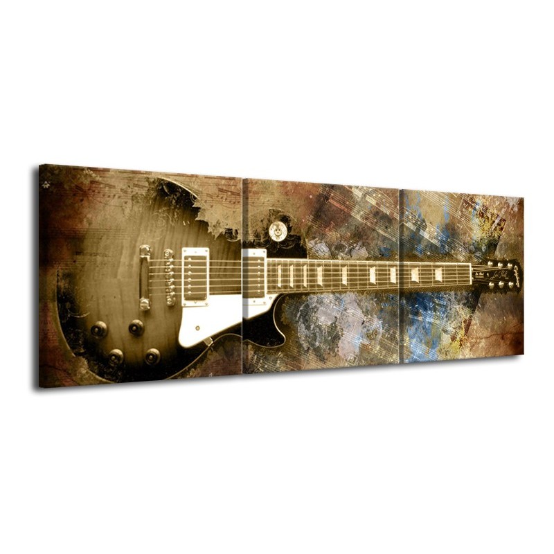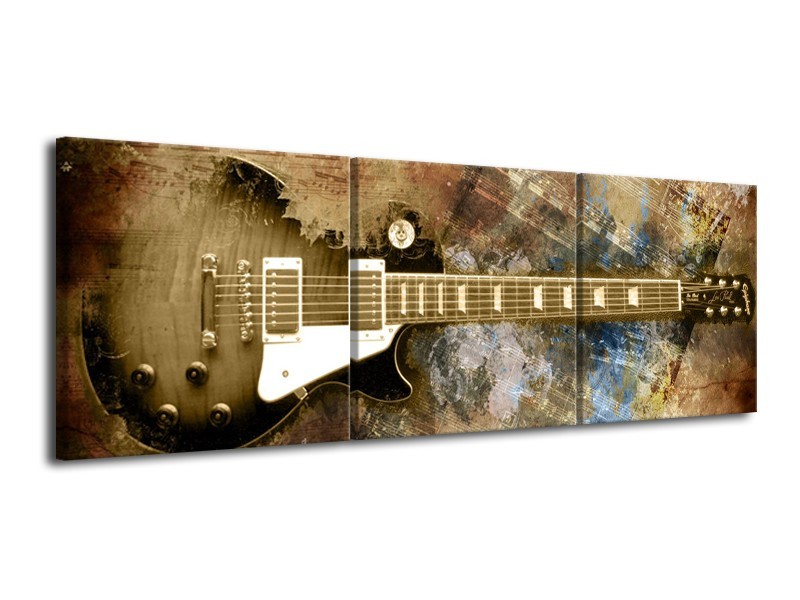 Canvas Schilderij Gitaar, Muziek | Bruin | 120x40cm 3Luik