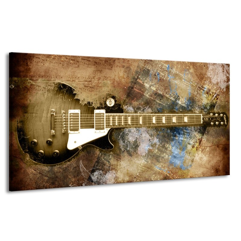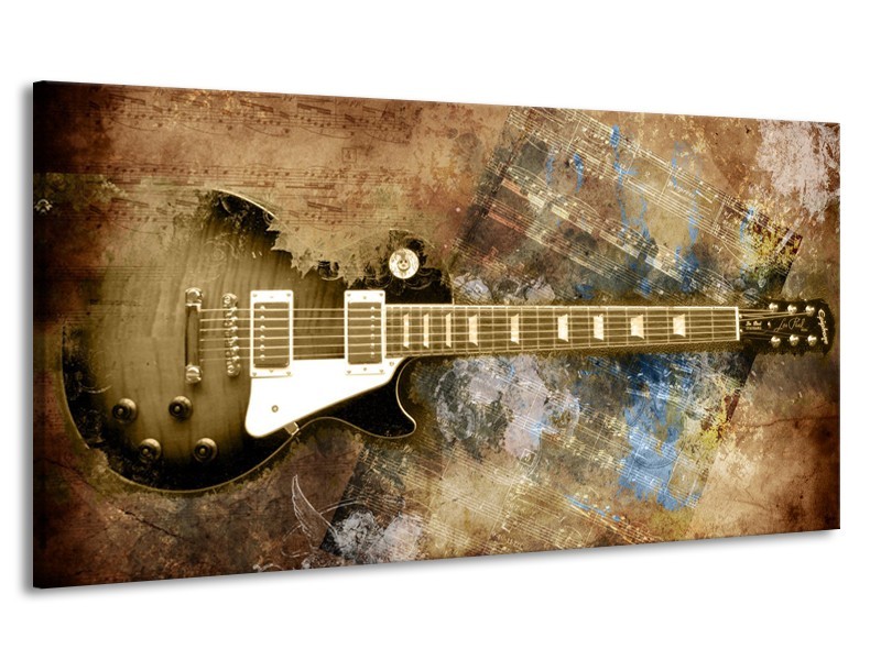 Canvas Schilderij Gitaar, Muziek | Bruin | 170x90cm 1Luik