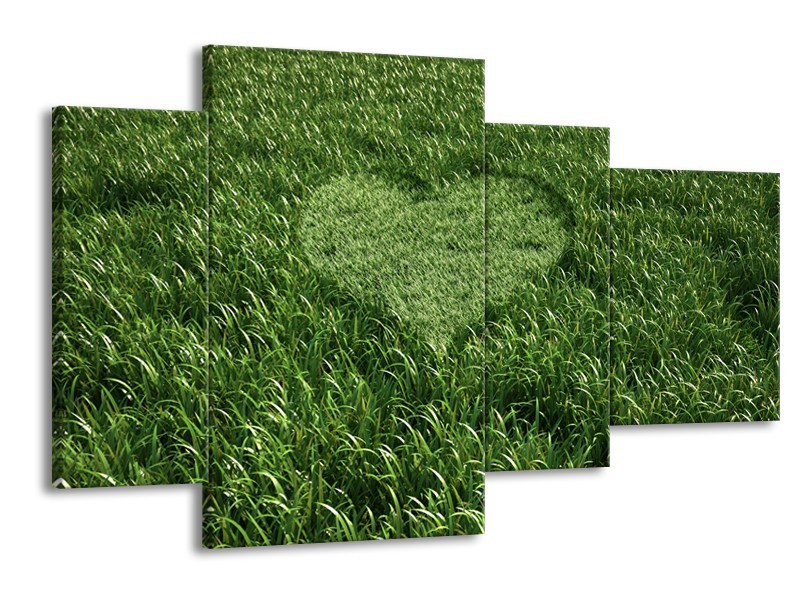 Canvas Schilderij Gras, Hart | Groen | 120x75cm 4Luik