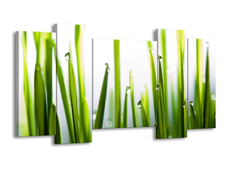 Canvas Schilderij Gras, Natuur | Groen, Geel, Wit | 120x65cm 5Luik