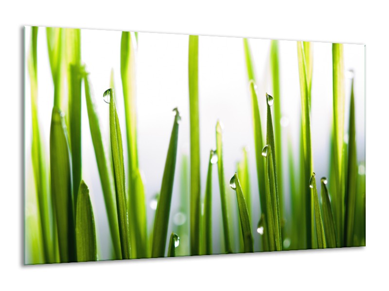 Canvas Schilderij Gras, Natuur | Groen, Geel, Wit | 120x70cm 1Luik