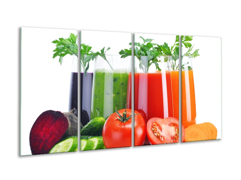 Canvas Schilderij Groenten, Keuken | Wit, Oranje, Groen | 160x80cm 4Luik