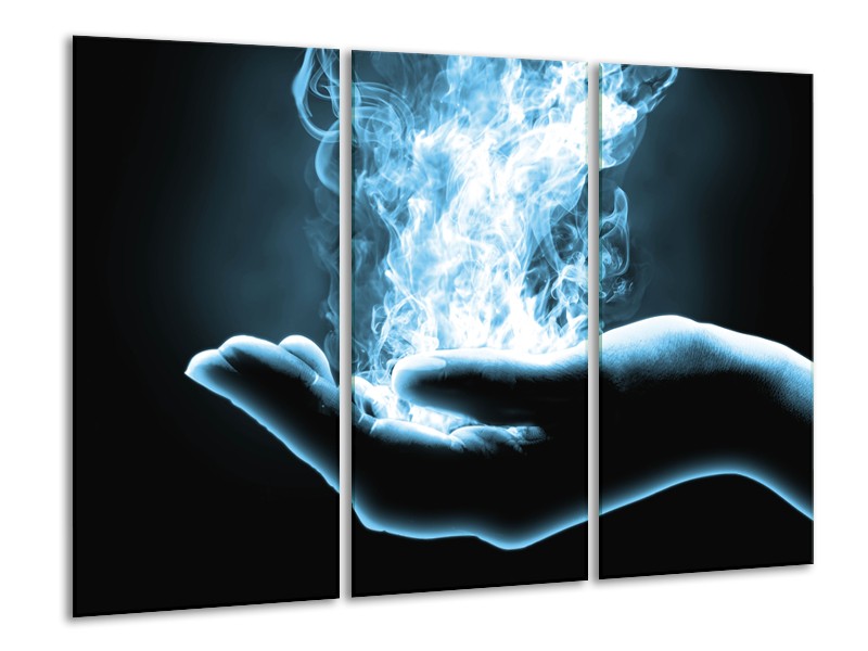 Canvas Schilderij Hand, Abstract | Blauw, Grijs, Zwart | 120x80cm 3Luik