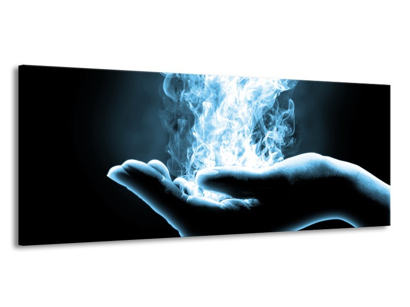 Canvas Schilderij Hand, Abstract | Blauw, Grijs, Zwart | 145x58cm 1Luik