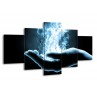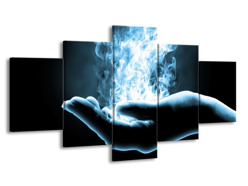 Canvas Schilderij Hand, Abstract | Blauw, Grijs, Zwart | 150x80cm 5Luik
