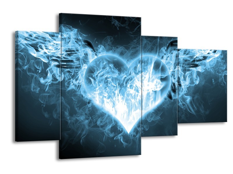 Canvas Schilderij Hart, Vuur | Blauw, Wit | 120x75cm 4Luik