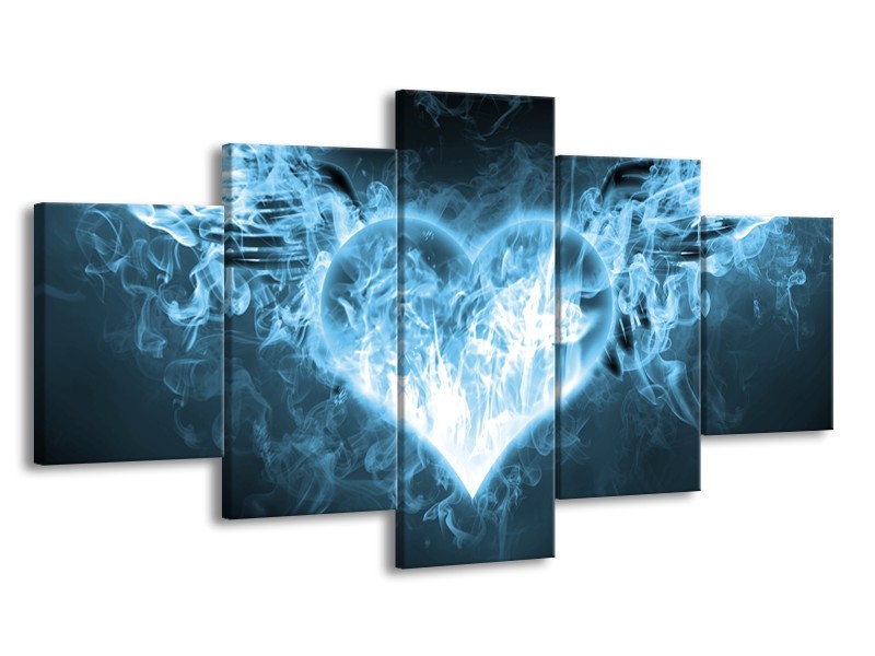 Canvas Schilderij Hart, Vuur | Blauw, Wit | 150x80cm 5Luik