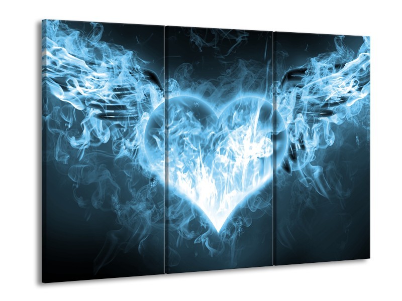 Canvas Schilderij Hart, Vuur | Blauw, Wit | 60x90cm 3Luik