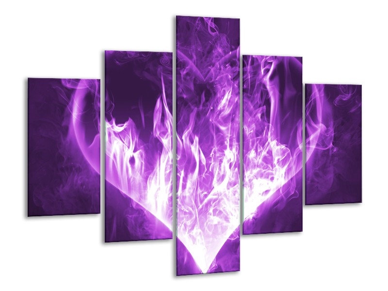 Canvas Schilderij Hart, Vuur | Paars, Wit | 100x70cm 5Luik