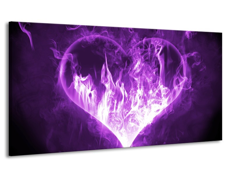 Canvas Schilderij Hart, Vuur | Paars, Wit | 170x90cm 1Luik