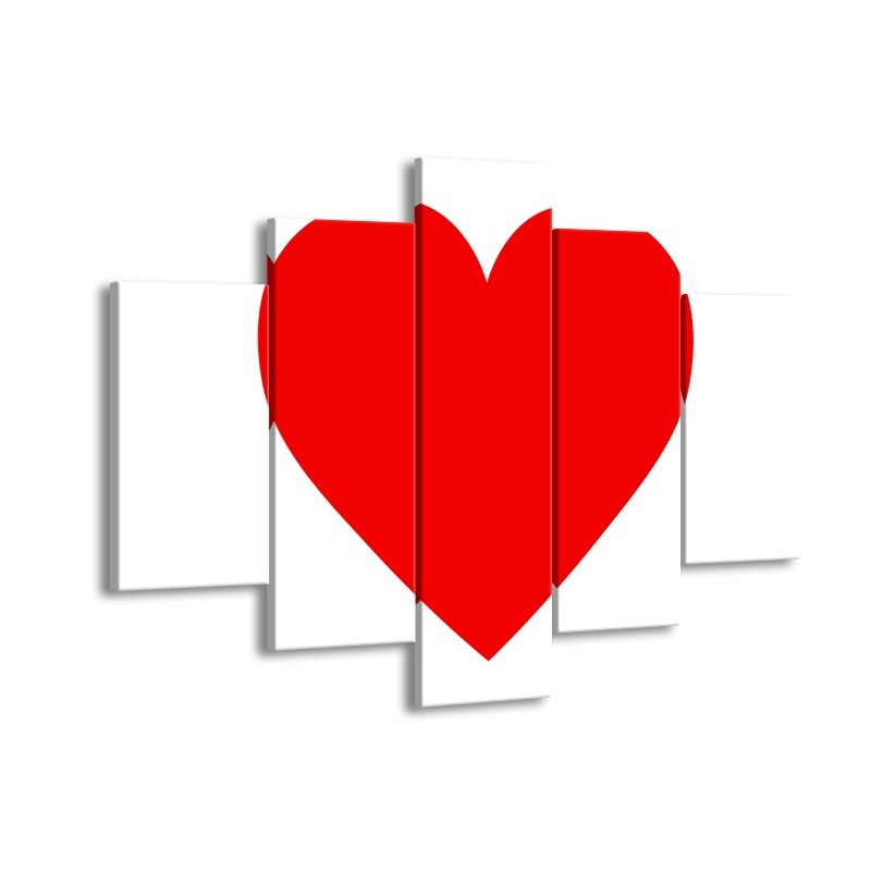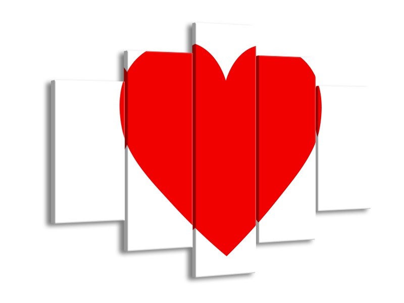 Canvas Schilderij Hart | Wit, Rood | 150x105cm 5Luik