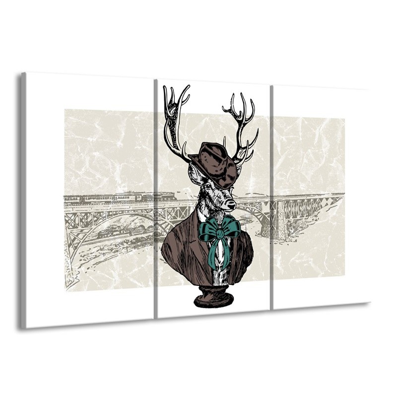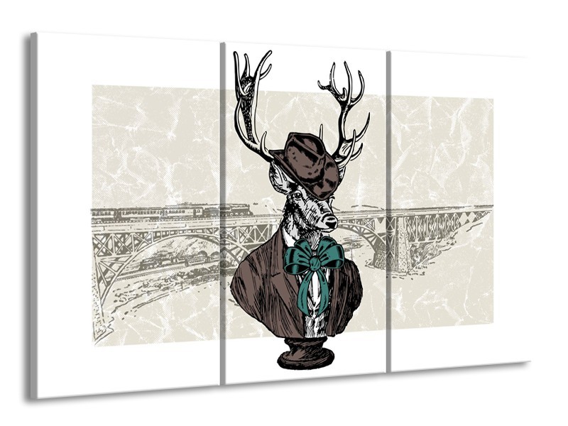 Canvas Schilderij Hert, Modern | Crème, Bruin | 165x100cm 3Luik