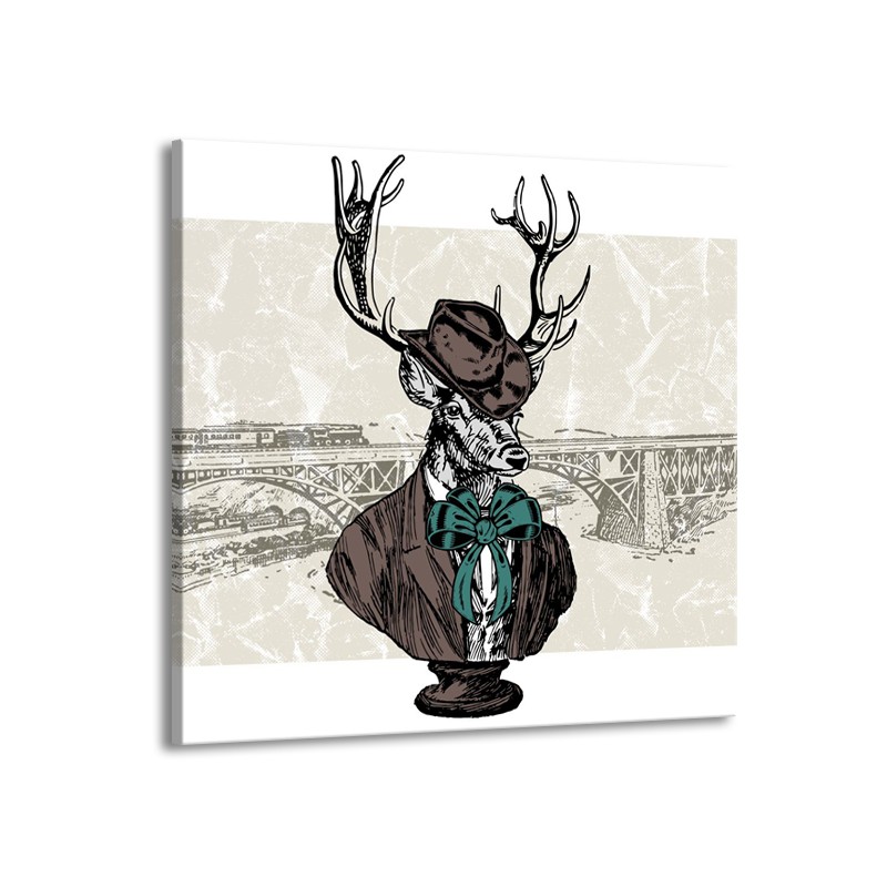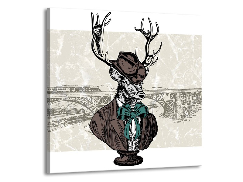 Canvas Schilderij Hert, Modern | Crème, Bruin | 70x70cm 1Luik