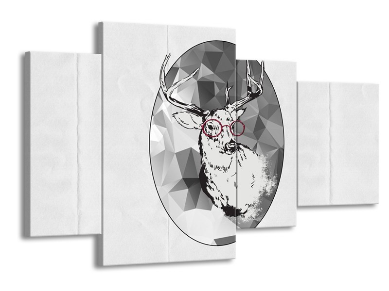 Canvas Schilderij Hert, Modern | Zwart, Wit | 120x75cm 4Luik