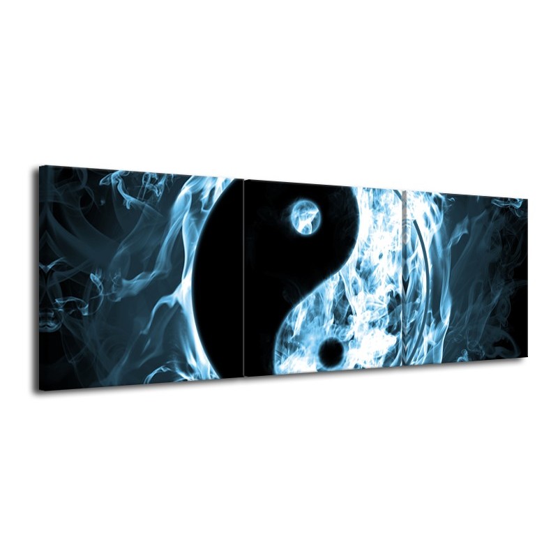 Canvas Schilderij Jin Jang | Zwart, Grijs, Blauw | 120x40cm 3Luik