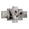 Canvas Schilderij Kat, Dieren | Grijs, Bruin | 125x70cm 5Luik