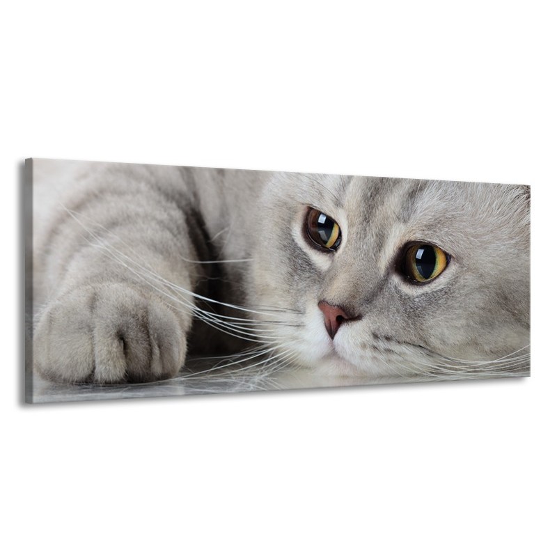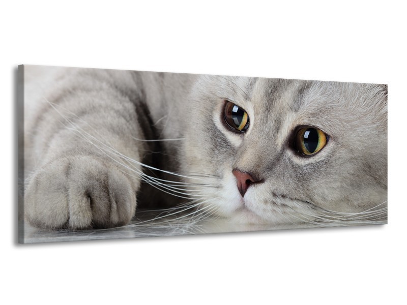 Canvas Schilderij Kat, Dieren | Grijs, Bruin | 145x58cm 1Luik