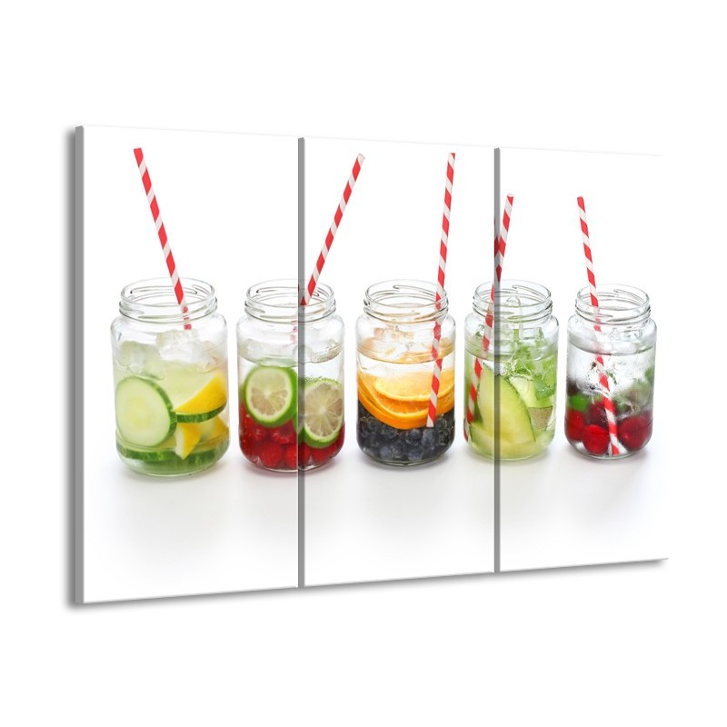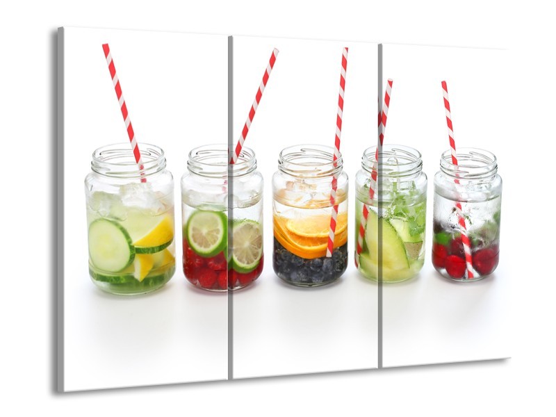 Canvas Schilderij Keuken, Drinken | Wit, Rood, Groen | 60x90cm 3Luik