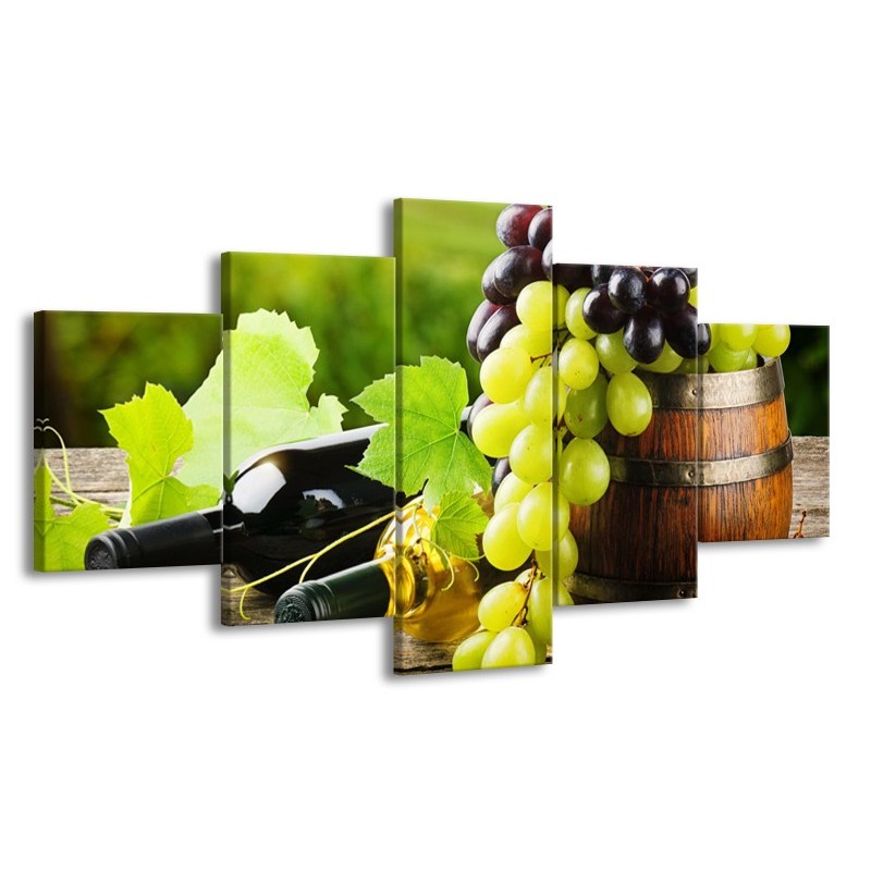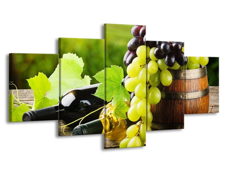 Canvas Schilderij Keuken, Druiven | Groen, Bruin | 150x80cm 5Luik