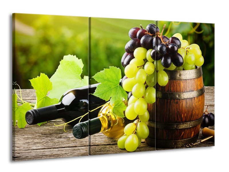 Canvas Schilderij Keuken, Druiven | Groen, Bruin | 165x100cm 3Luik