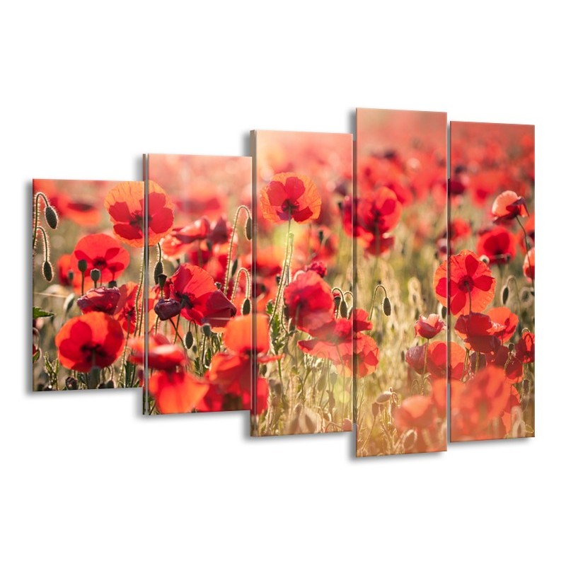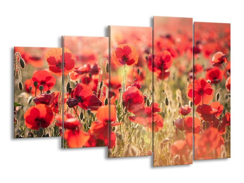 Canvas Schilderij Klaproos, Bloemen | Rood, Bruin | 150x100cm 5Luik